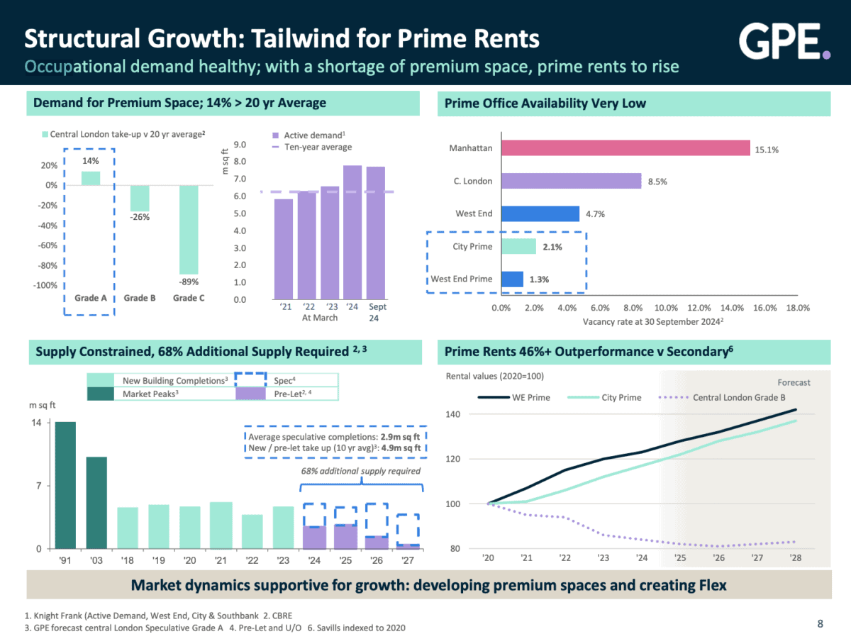 Ich denke, Anleger haben eine Reihe von Möglichkeiten, um ein gutes Ergebnis aus Aktien in Great Portland Estates zu erzielen. Einer stammt aus dem Geschäft des Unternehmens und der andere vom Verkauf seines Vermögens.