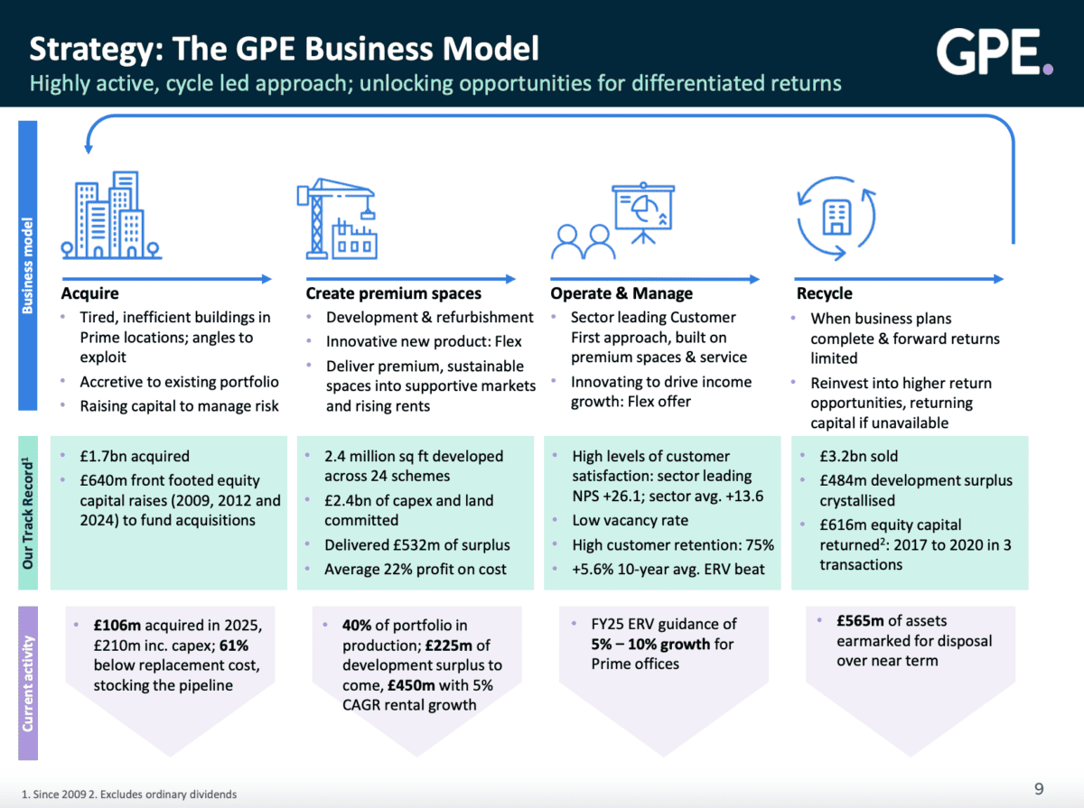 Mit großartigen Portland Estates ist der Verkauf von Vermögenswerten jedoch ein wesentlicher Bestandteil des Geschäfts. Die Strategie des Unternehmens beinhaltet das Erwerb, die Entwicklung, das Leasing und die letztendliche Entsorgung von Immobilien.