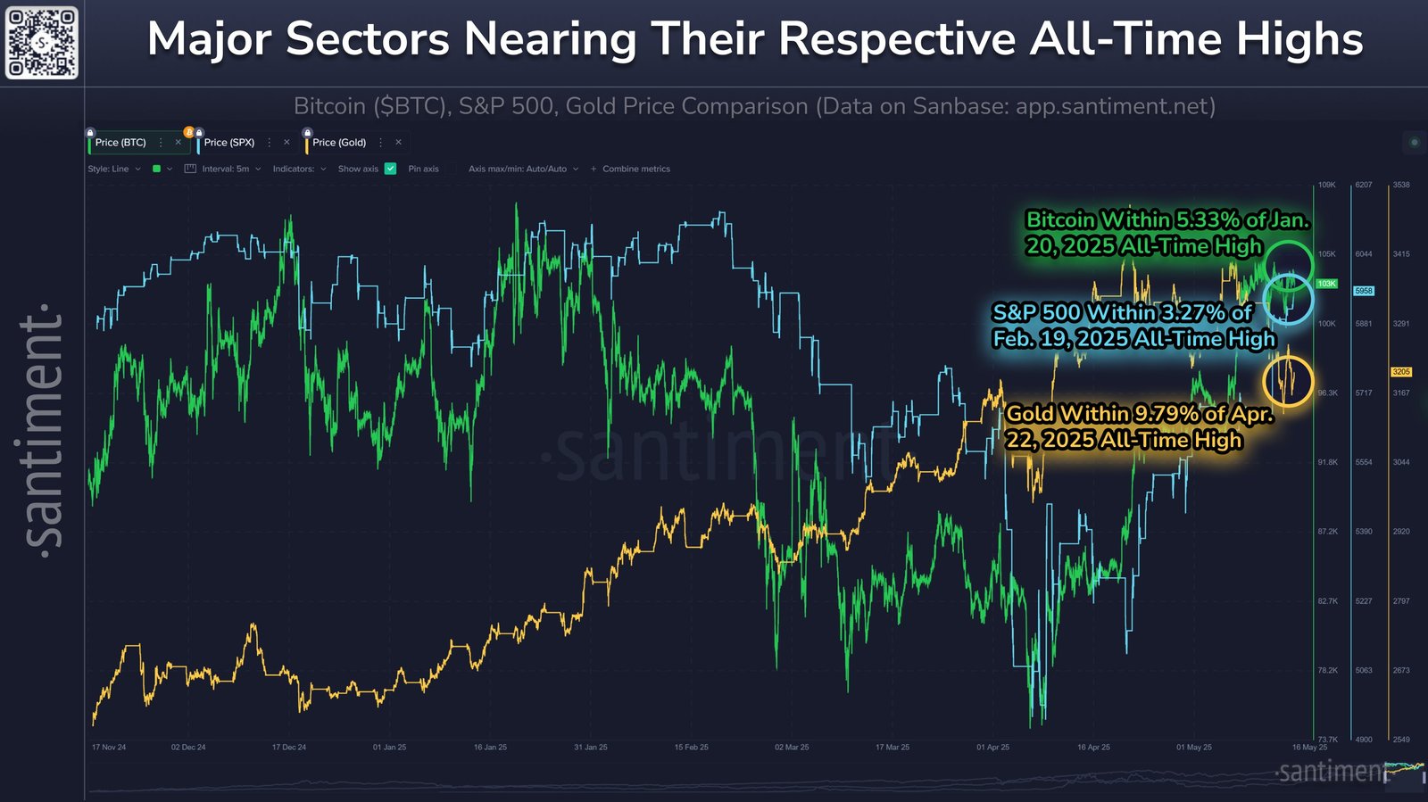“Mit der 90-tägigen Tarif-Pause zwischen den US-amerikanischen und China Montag bleiben die Märkte in einem markanten Abstand von Höchstständen”, wurde es am 17. Mai zusammengefasst und bezieht sich auf die S & P 500, Bitcoin und Gold.