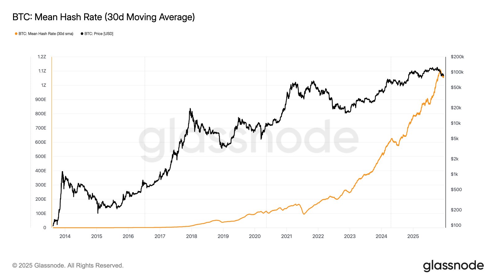 Sie sagten, dass Perioden anhaltender Hash-Rate-Kompression in der Vergangenheit stärkeren Bitcoin-Renditen vorausgegangen seien und erklärten, dass BTC seit 2014 in 65 % der Fälle positive 90-Tage-Renditen erzielt habe, nachdem die Hash-Rate in 30 Tagen gesunken sei.