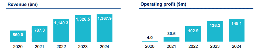 Das mag sehr gering klingen, aber die Firma genießt tatsächlich solide Margen (10,8%). Und das Wachstum war in der Vergangenheit beeindruckend und stieg im Vorjahr von 787 Mio. USD im Jahr 2021 auf fast 1,4 Mrd. USD. Rund 98% des Umsatzes stammen aus Nordamerika.