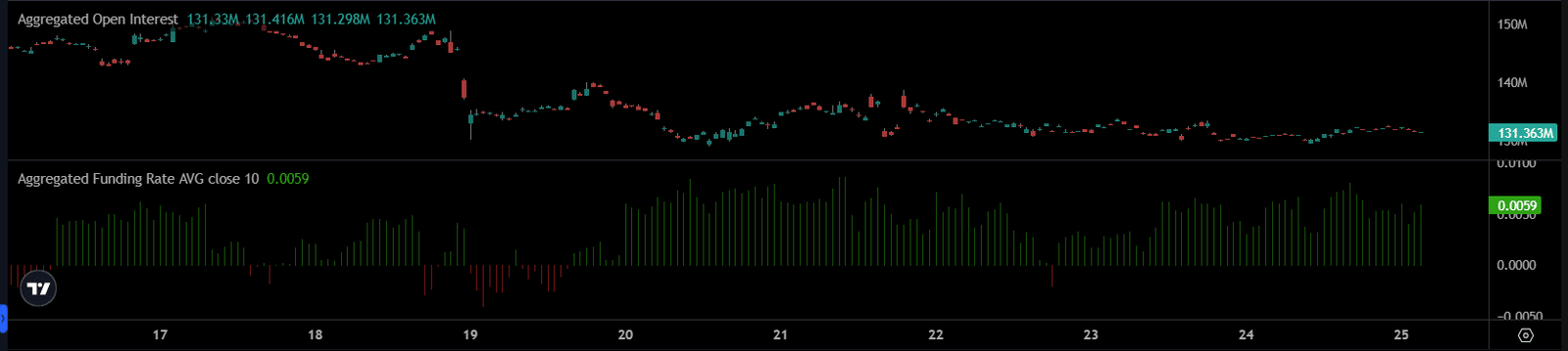In der letzten Woche Aaves [AAVE] Aggregiertes offenes Interesse [OI] blieb weitgehend stabil um die 130-Millionen-Dollar-Marke; Trotz des Rückgangs haben die Händler ihre Positionen nicht überstürzt geschlossen.