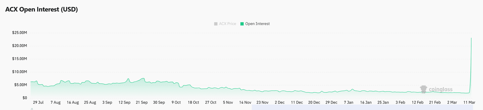 Protokollübergreifend [ACX] ist innerhalb von 24 Stunden um fast 96 % gestiegen, da das Handelsvolumen um über 8.200 % in die Höhe schoss, was eine intensive Marktaktivität auf den Spotmärkten auslöste.
