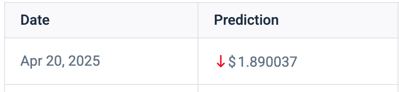 Leider wurden die nächsten paar Tage rot für den Altcoin gestrichen. Nach Angaben von coincodex wird XRP in den kommenden Tagen wahrscheinlich sinken. Das Vermögenswert wird am 19. April sogar unter 2 US -Dollar gedrängt. Am 20. April wird die Kryptowährung bei 1,8900 USD eingeteilt, was für seine Investoren größere Verluste einbringt. Während dies eine bloße kurzfristige Hürde ist, müssen sich die Anleger in Zukunft sehr freuen.
