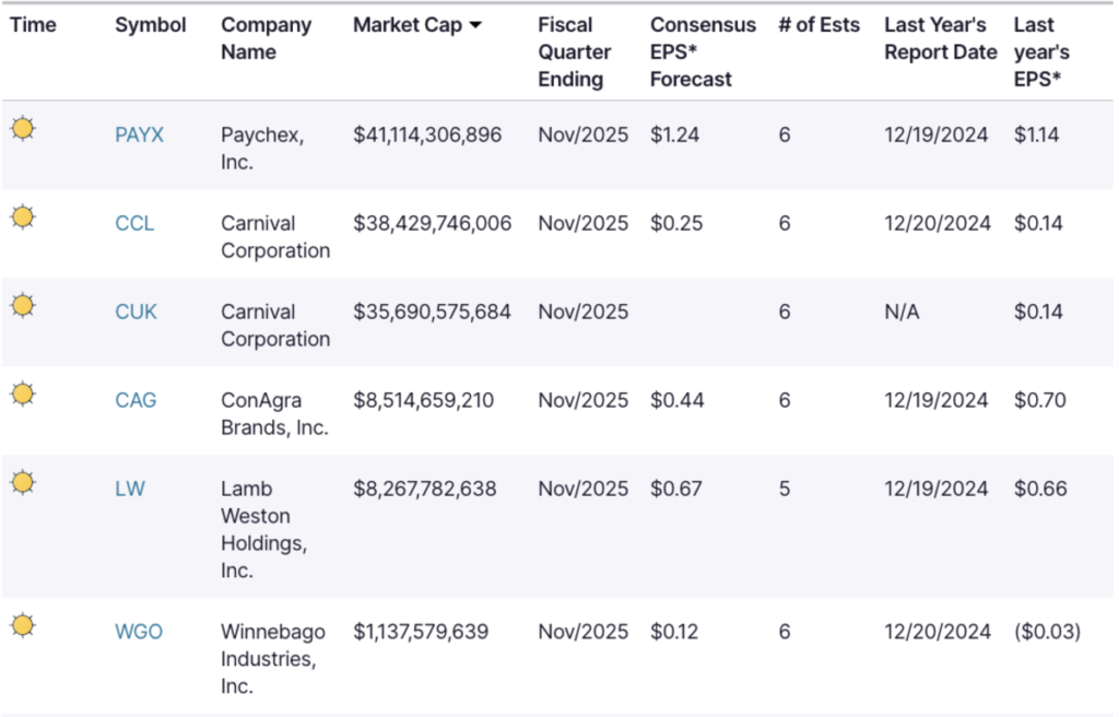 Einnahmen heute: Paychex, Carnival, ConAgra