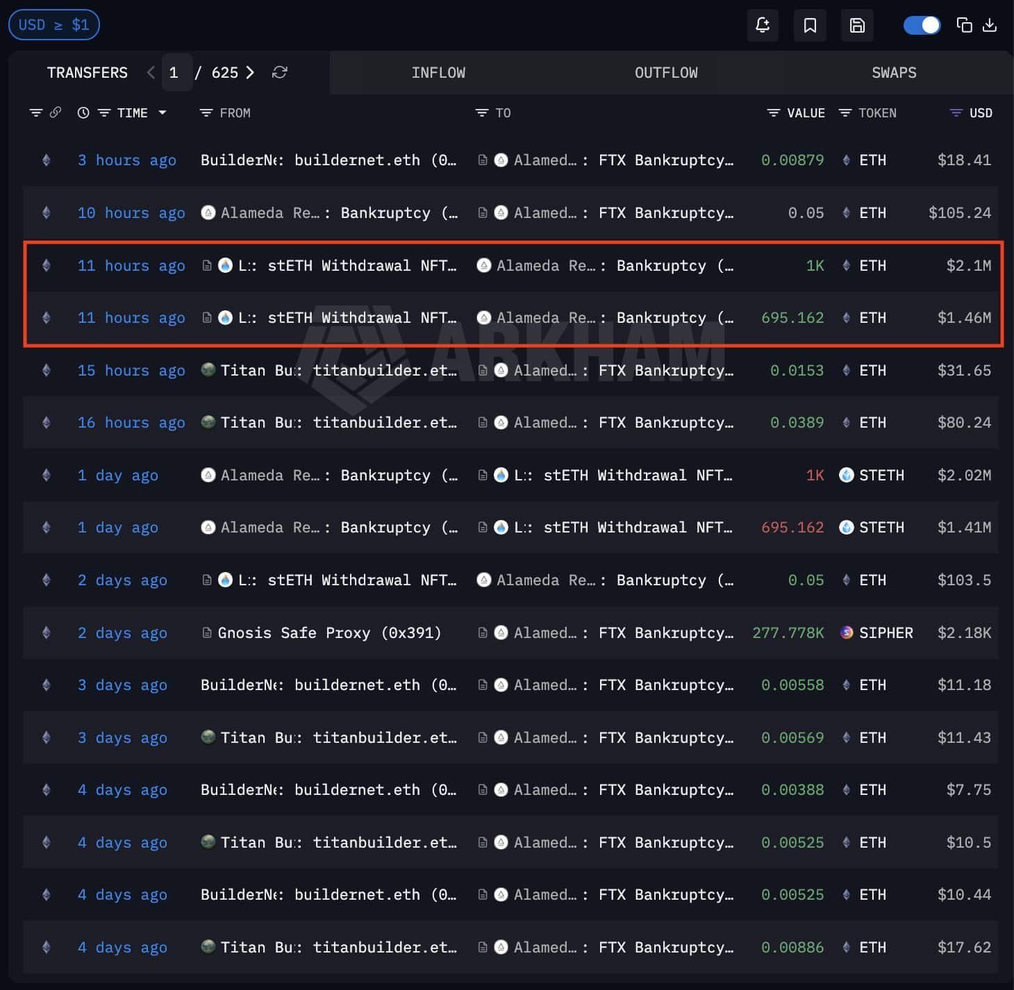 Nach Angaben von Arkham hat Alameda mehr als 1.695 ETH im Wert von mehr als 3,56 Millionen US-Dollar freigegeben. Dieser Schritt scheint einem bekannten Muster zu folgen. Das heißt, vor drei Wochen haben sie SOL-Token im Wert von mehr als 17 Millionen US-Dollar verkauft.