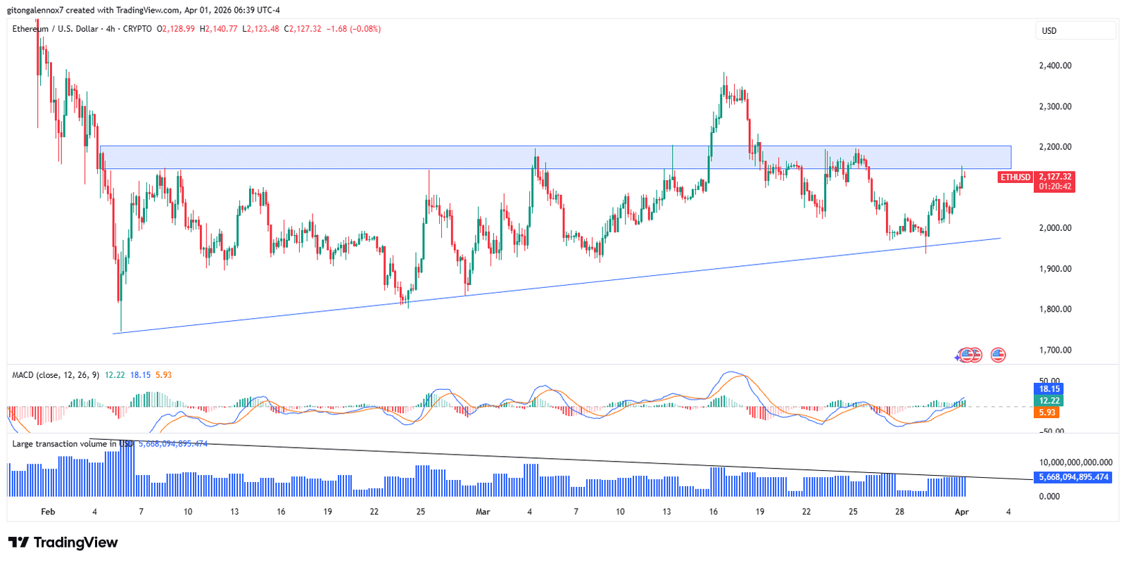 Der Ethereum-Preis zeigte derzeit Stärke. Auf dem 4-Stunden-Chart handelte der Altcoin in der Nähe einer Widerstandszone, die den Preis seit Februar gehalten hatte.