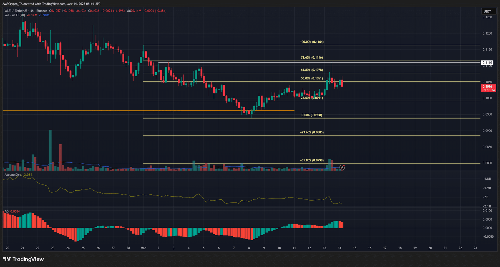 In einem früheren Bericht hatte AMBCrypto die Händler dazu aufgerufen Verkaufe den Sprung. WLFI hat gerade diese Gelegenheit geboten. Nachrichten, dass das Team von World Liberty Financial 39,7 Mio. WLFI gesendet hat im Wert von 4 Millionen US-Dollar für Binance lediglich die Überzeugung der Bären bestärkt.