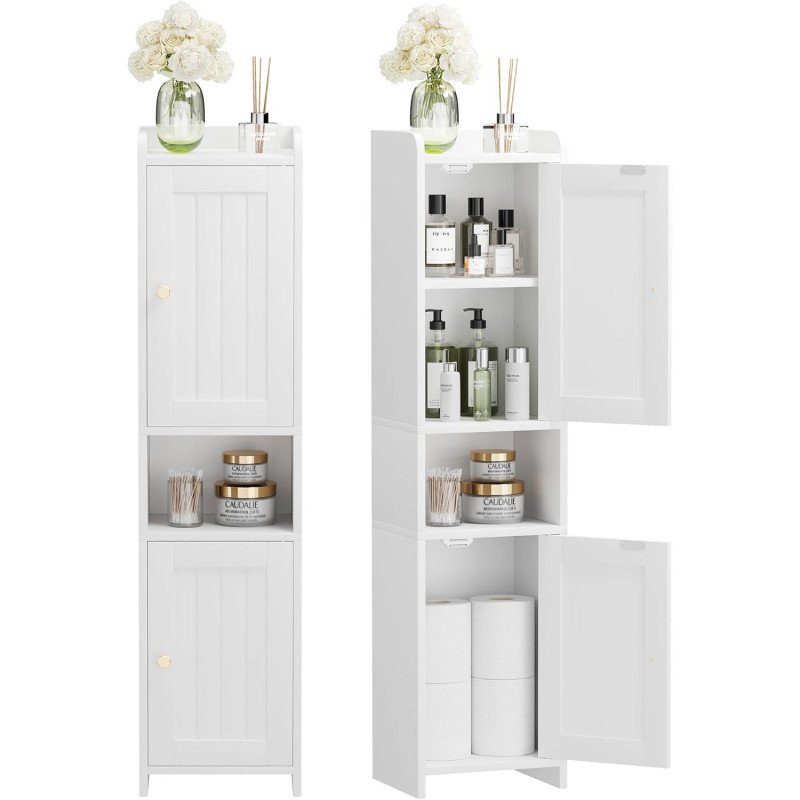 Es ist beeindruckend, was ein guter Aufbewahrungsschrank leisten kann, insbesondere in einem kleinen Raum wie einem Badezimmer, und dieser schmale freistehende Schrank erfüllt alle Anforderungen. Mit einer Länge von 9,8 Zoll, einer Breite von 7,3 Zoll und einer Höhe von 40,4 Zoll ist er nicht zu lang, nicht zu breit und gerade hoch genug, um den vertikalen Stauraum optimal zu nutzen. Es hat das Potenzial, in kleine Räume, wie den Bereich zwischen Toilette und Waschbecken, zu passen und ihn in einen nützlichen und praktischen Aufbewahrungsort zu verwandeln.
