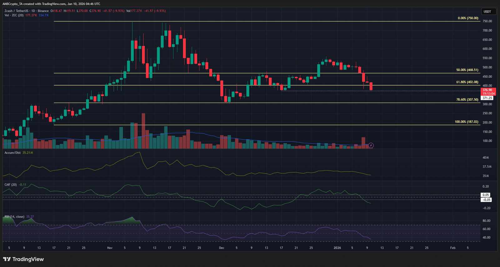 - Ein Preisrückgang unter 370 US-Dollar, angeheizt durch die jüngsten Turbulenzen und den Stimmungsumschwung bei ZEC, könnte wahrscheinlich sein.