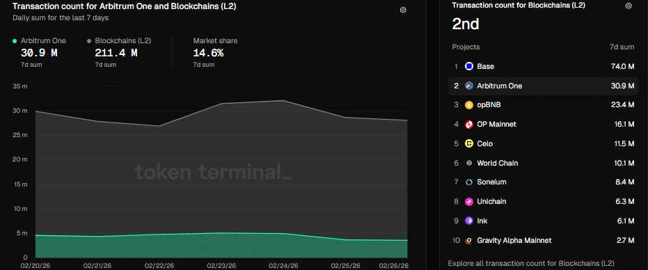 Die Netzwerkaktivität zeigte die Dominanz von Arbitrum gegenüber ETH L2s, da es nur an zweiter Stelle stand Basiskette.