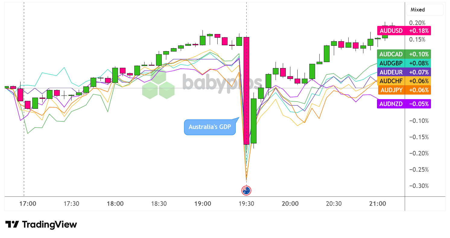 Dadurch gelang es der Währung ziemlich schnell, wieder auf die Beine zu kommen, und erholte sich gegenüber den meisten ihrer Gegenstücke innerhalb weniger Stunden nach der Veröffentlichung wieder auf das Vor-BIP-Niveau. Der AUD ist gegenüber dem USD um 0,18 % und gegenüber dem CAD um 0,10 % gestiegen, blieb aber gegenüber dem Comdoll-Rivalen NZD 0,08 % im Minus.