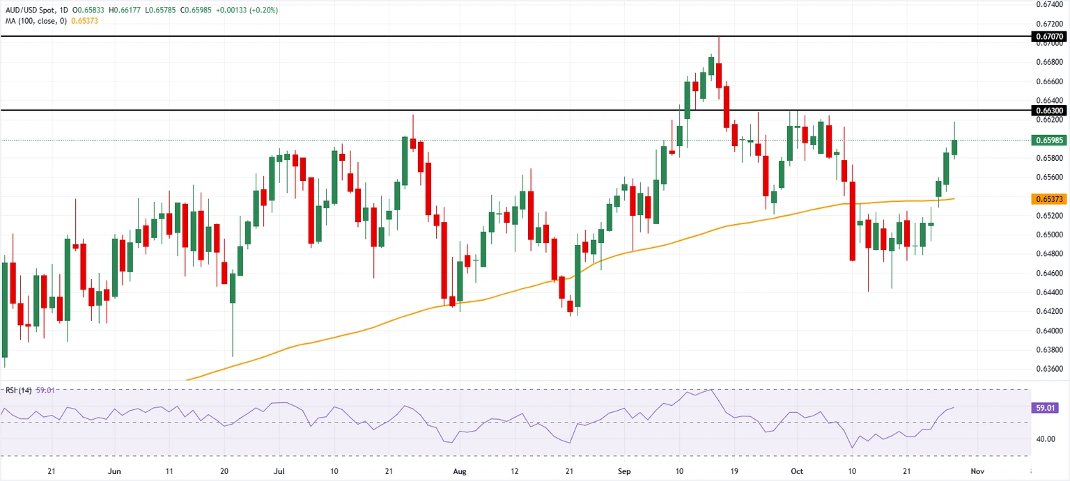Insgesamt ist AUD/USD leicht höher, könnte aber bis dahin unter 0,6630 bleiben Federal Reserve verkündet sein Urteil. Kurzfristig werden die Botschaft von Jerome Powell und das Ergebnis des Trump-Xi-Treffens die Richtung des Paares bestimmen.