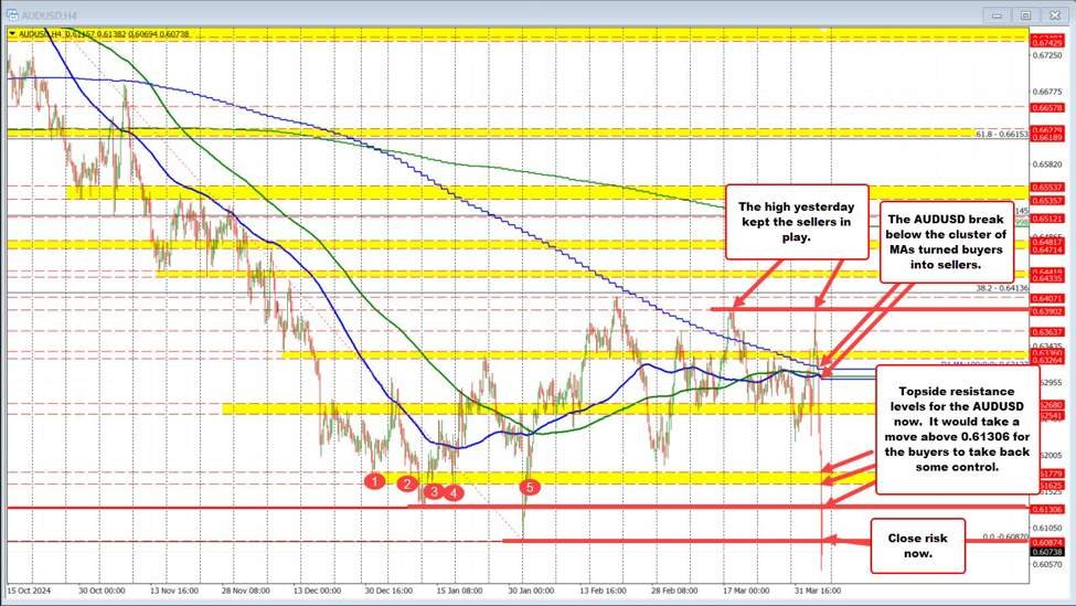 Während des niedrigeren Umzugs verlängerte der Preis unter dem 2024 niedrig Anfang Februar um 0,60870Breaking Key Support. Während es einen kurzen Rückprall von den Tiefstständen gab, blieb die Rallye in der Nähe des 13. Januar Schwung niedrig bei 0,61306mit der hohen Erreichung 0,61382– Nur über dieser Ebene.