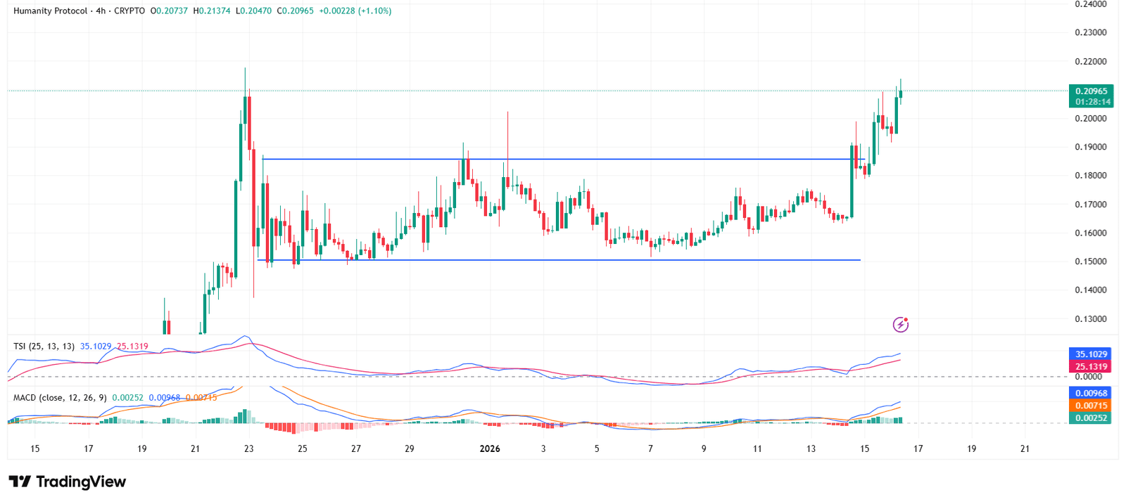 Humanity Protocol verzeichnete in den letzten 24 Stunden die zweithöchsten Zuwächse unter den Top-100-Kryptowährungen.