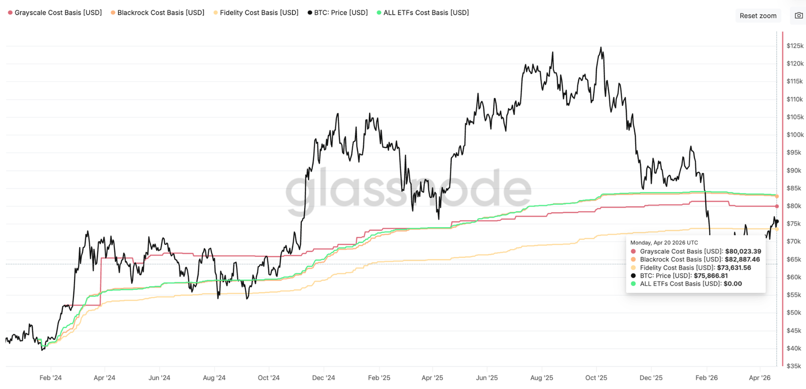 Als nächste große Hürde wird die Kostenbasis des US-Spot-Bitcoin-ETFs von 83.100 US-Dollar angesehen.