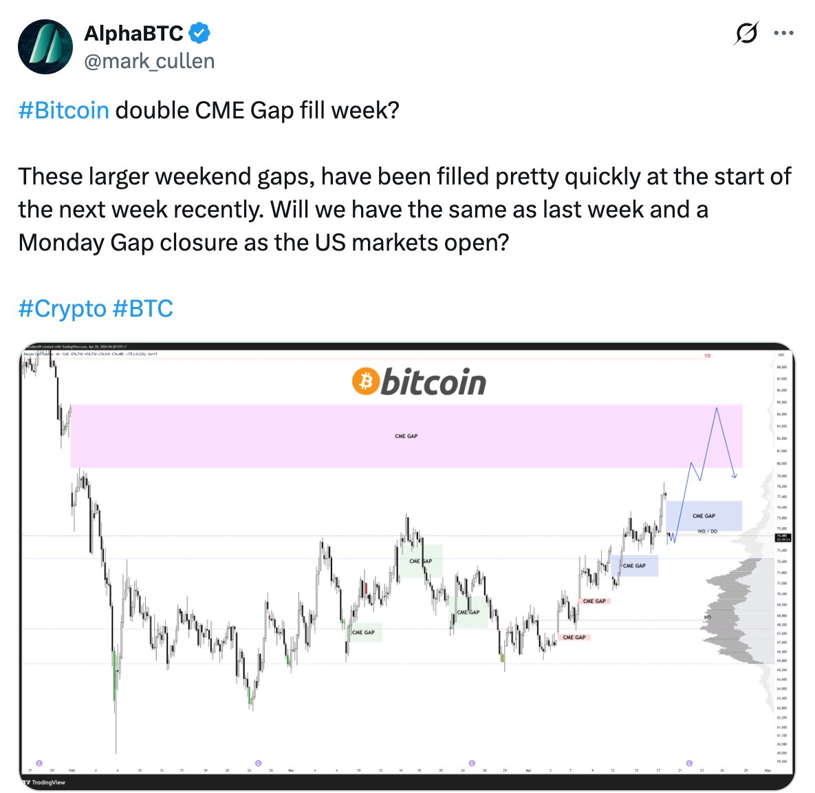 Der Analyst AlphaBTC sagte, dass das BTC/USD-Paar höher steigen könnte, um die CME-Lücke bei 84.000 US-Dollar zu schließen, die Anfang Februar entstand.