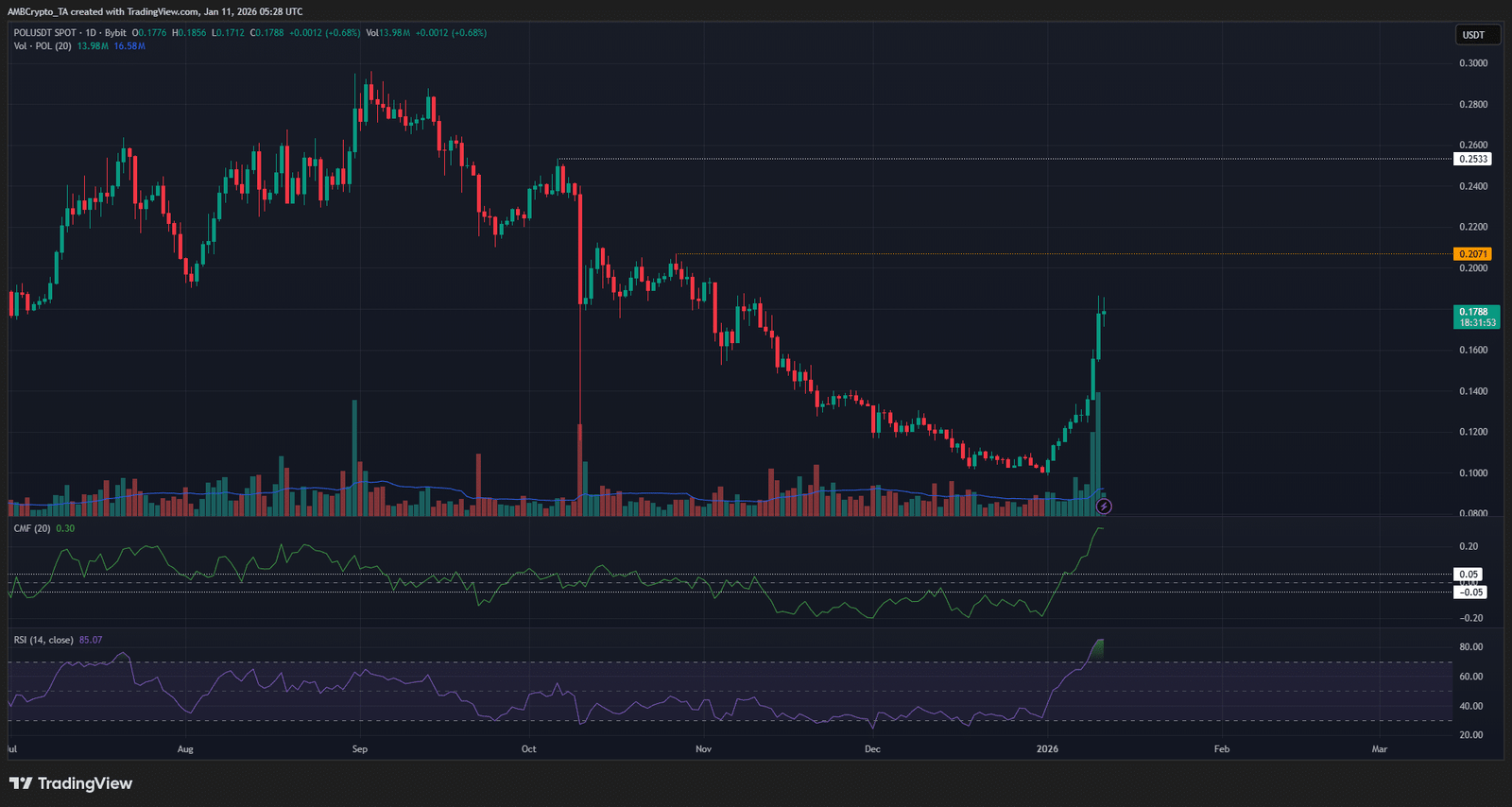Polygon-Ökosystem-Token [POL] hat innerhalb von 24 Stunden um 9,29 % zugelegt und ist in der vergangenen Woche um 48,5 % gestiegen. Diese beeindruckende Leistung begann am 1. Januar, als Bitcoin [BTC] und der breitere Kryptomarkt begann, schnelle Gewinne zu erzielen.