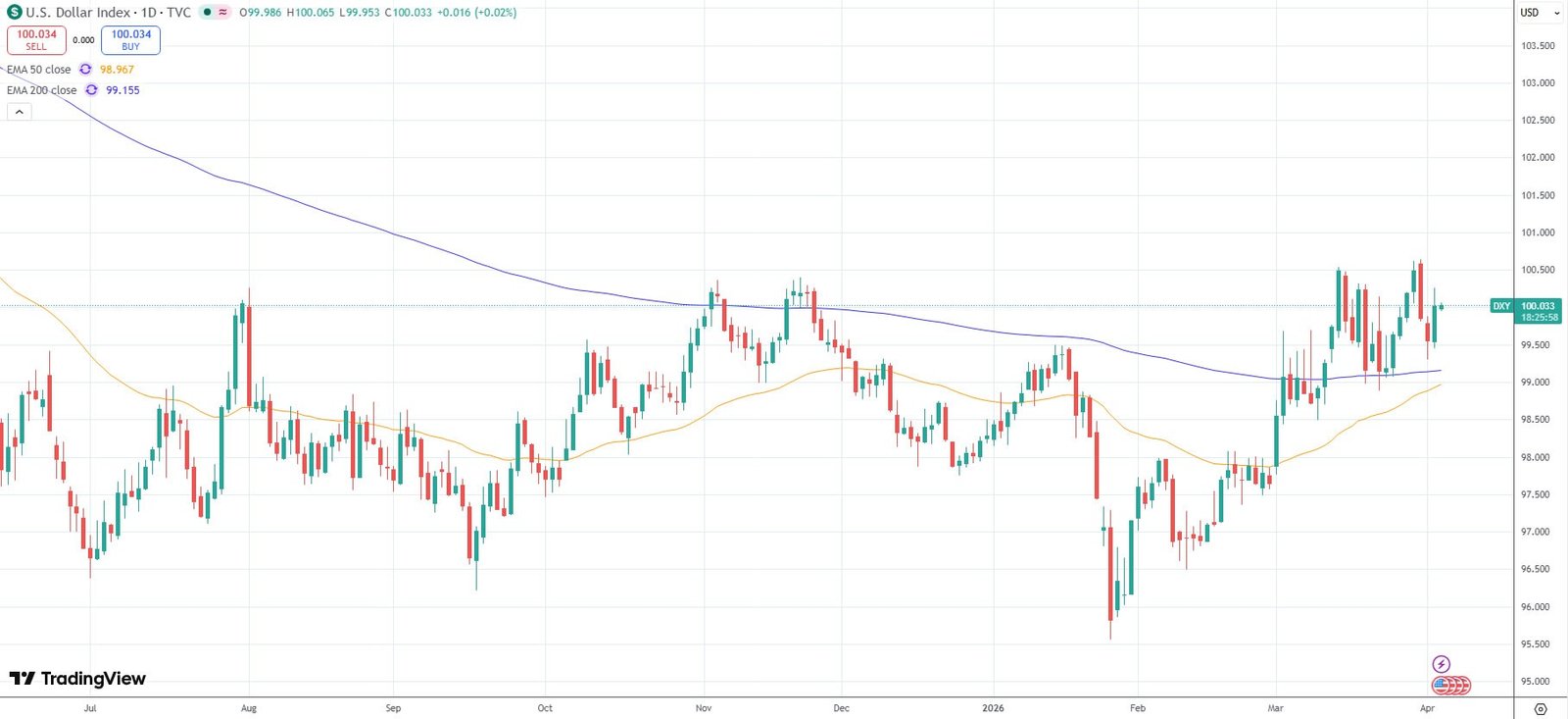 Der US-Dollar-Index (DXY) hat ca. 5 % zugelegt in den letzten zwei Monaten, nach zu TradingView.