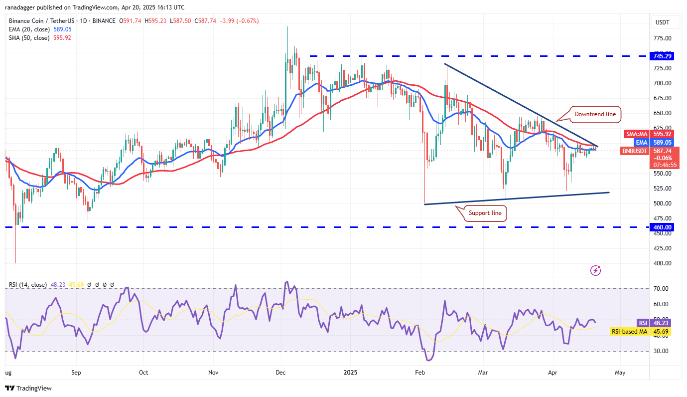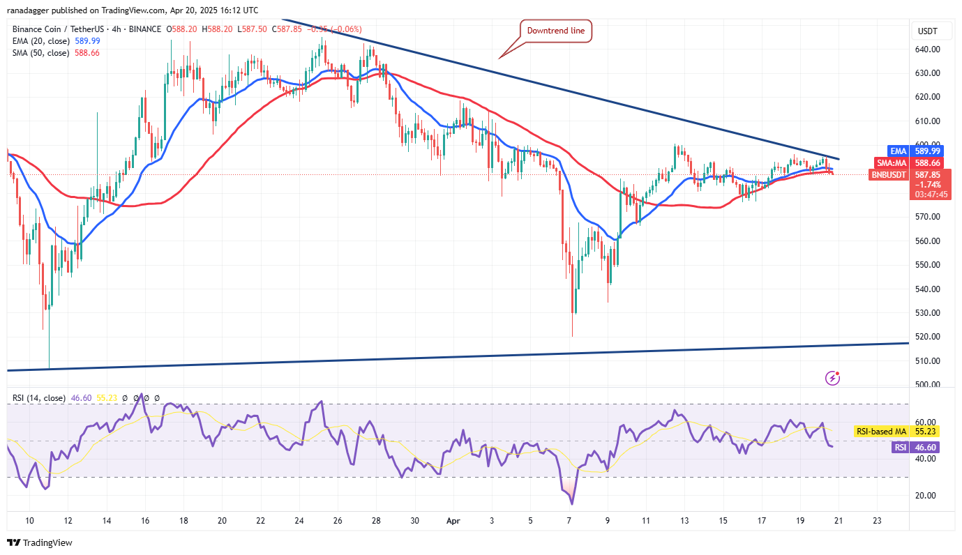 BNB (BNB) steht vor Widerstand an der Abwärtstrendlinie, aber ein positives Zeichen ist, dass die Bullen keinen Boden an die Bären abgeschoben haben.