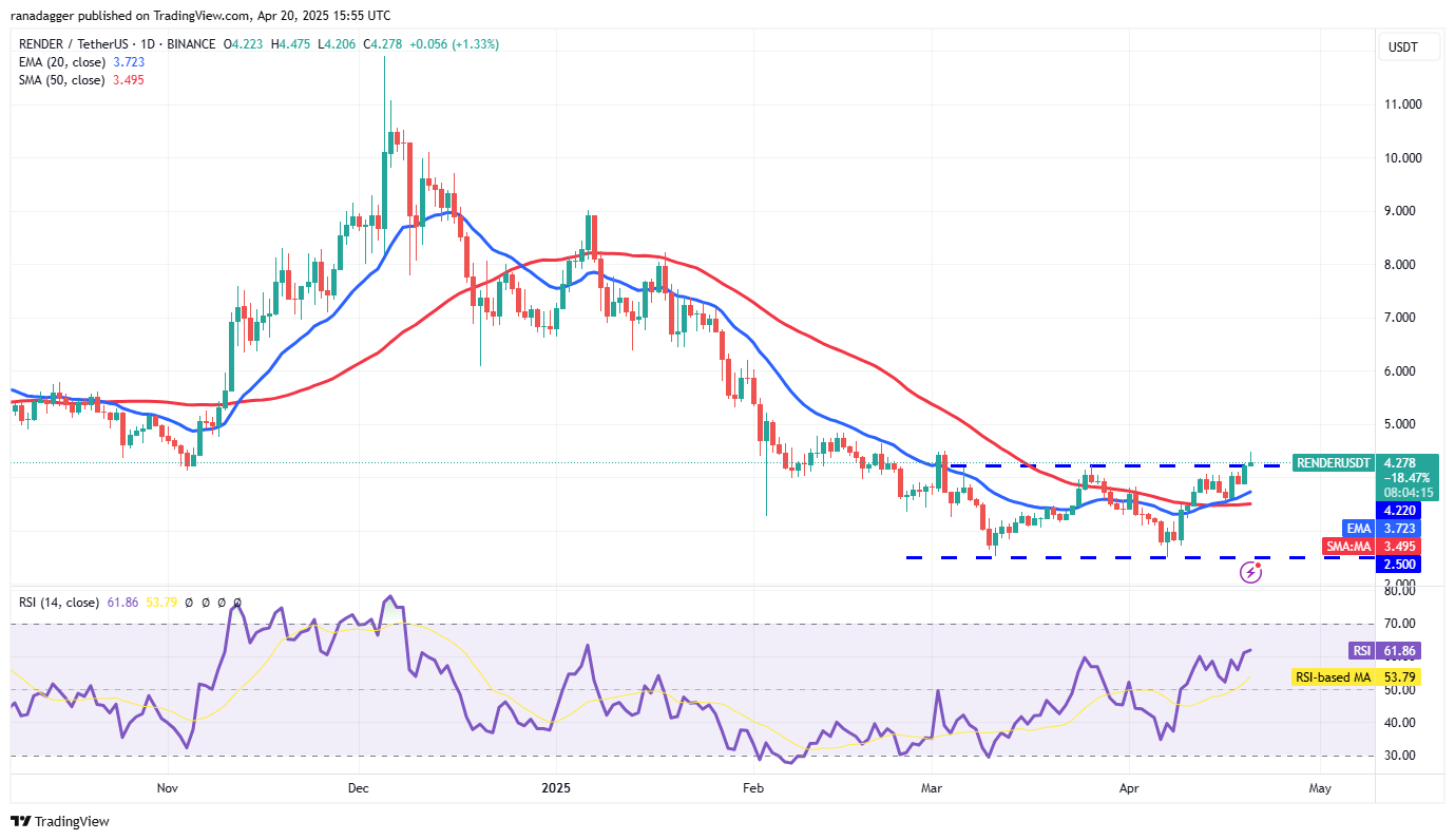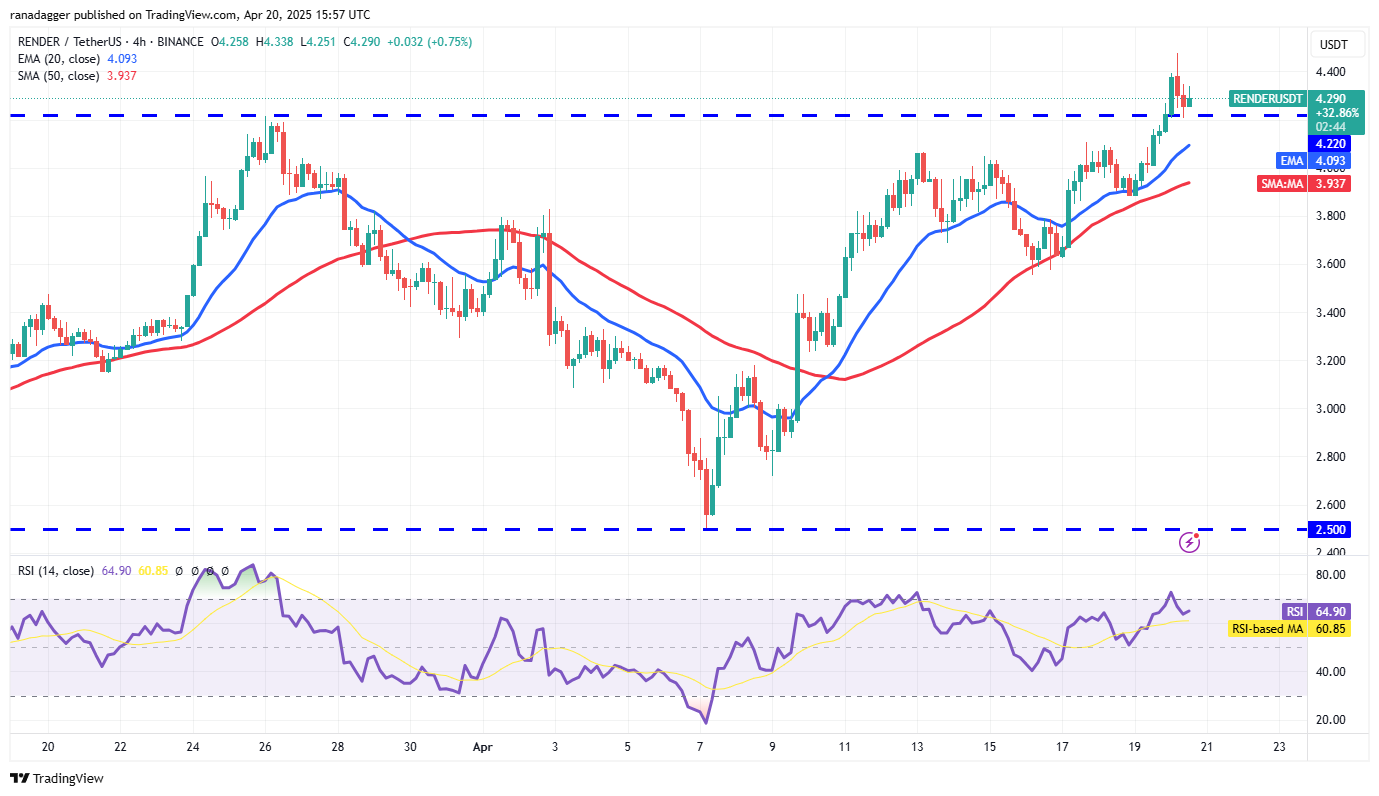 Rendern (RNDR) ist aus dem Overhead -Widerstand bei 4,22 US -Dollar ausgebrochen und signalisiert, dass die Bullen ein Comeback versuchen.