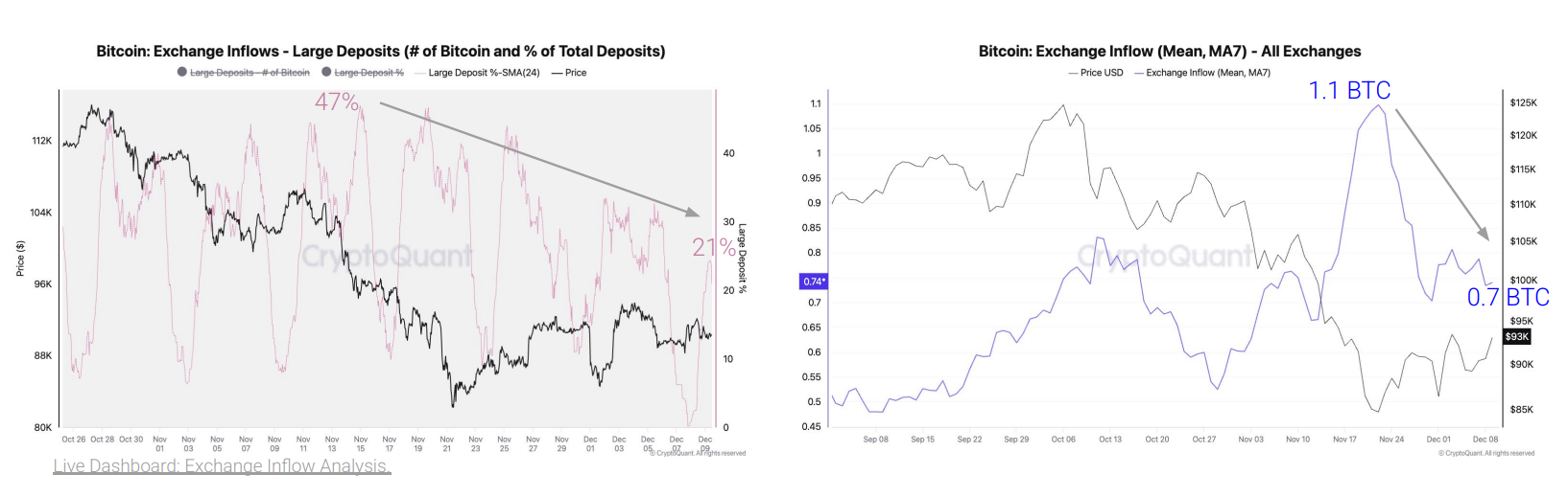 „Der Anteil der gesamten Einlagen großer Spieler ist von einem 24-Stunden-Durchschnittshoch von 47 % Mitte November auf 21 % heute gesunken“, hieß es.