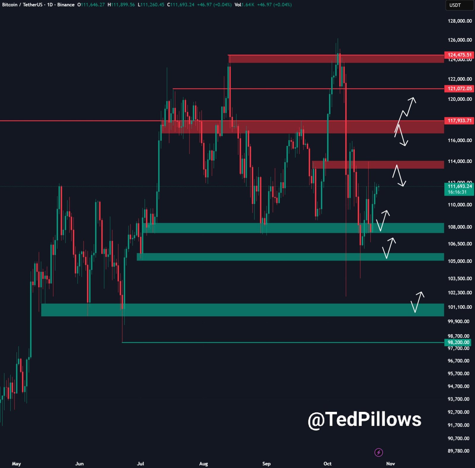„Ich habe immer noch einen Bereich von 112.000 bis 114.000 US-Dollar im Auge, da eine Rückforderung BTC sehr bald auf über 118.000 US-Dollar treiben könnte.“