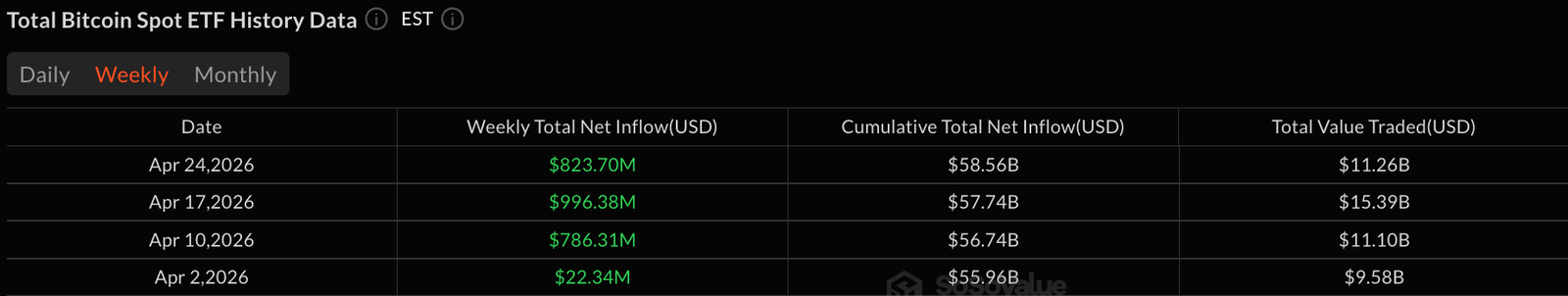 - Bitcoin-ETFs zog in dieser Woche 824 Millionen US-Dollar ein, angeführt von der Dominanz von Blackrock IBIT in Höhe von 732 Millionen US-Dollar.