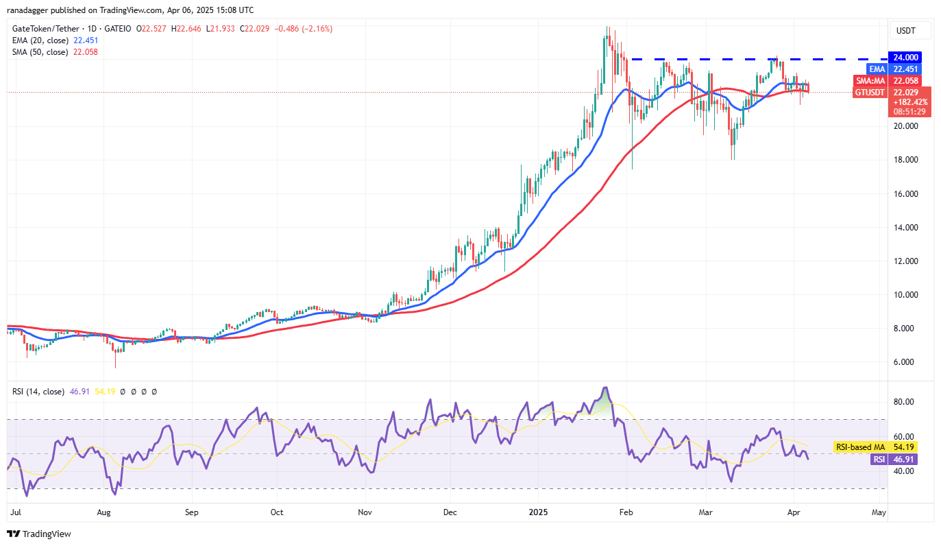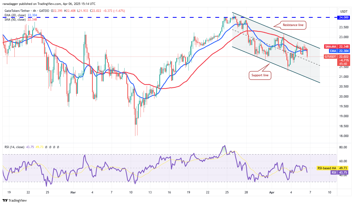Die flachen, bewegenden Durchschnittswerte und der RSI direkt unterhalb des Mittelpunkts bieten weder den Bullen noch den Bären einen klaren Vorteil. Eine Pause und ein Schließen über 23,18 USD könnten den Preis auf 24 US -Dollar erhöhen. Dies bleibt der wichtigste Überkopfwiderstand, den die Bären verteidigen können, da ein Pausen das GT/USDT -Paar auf 26 US -Dollar katapultieren könnte.