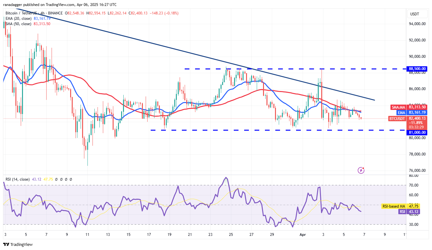 Der 20-tägige exponentielle gleitende Durchschnitt (84.241 US-Dollar) fällt aus, und der relative Festigkeitsindex (RSI) liegt knapp unter dem Mittelpunkt und signalisiert ein Gleichgewicht zwischen Angebot und Nachfrage.