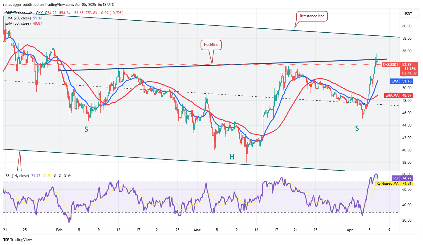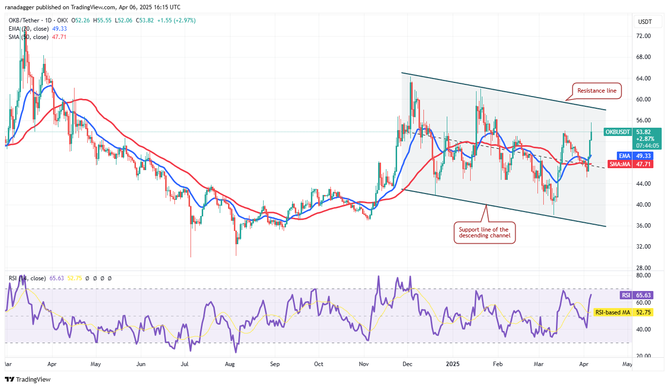 Der Aufstieg wurde fortgesetzt, und die Bullen schob den Preis am 6. April über den kurzfristigen Widerstand bei 54 US-Dollar. Das OKB/USDT-Paar könnte die Widerstandslinie des absteigenden Kanals erreichen, der wahrscheinlich Verkäufer anzieht. Wenn sich der Preis stark abläuft und unter 54 US -Dollar bricht, kann das Paar noch einige Tage im Kanal schwingen.