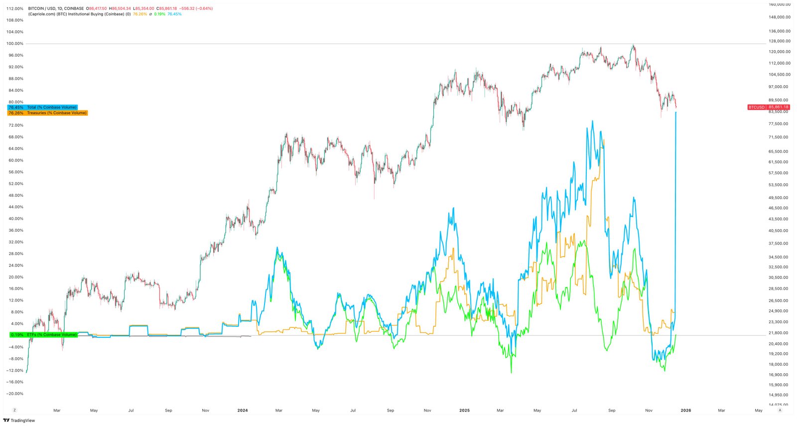 Bitcoin (BTC) ist von seinem Höchststand von 126.200 $ um 30 % gesunken, wird knapp über der Unterstützung von 85.000 $ gehandelt und schürt Bedenken hinsichtlich eines tieferer Rückzug in Richtung der 70.000-Dollar-Region. Dennoch zeigten On-Chain-Daten, dass Institutionen und vermögende Privatpersonen BTC anhäufen.
