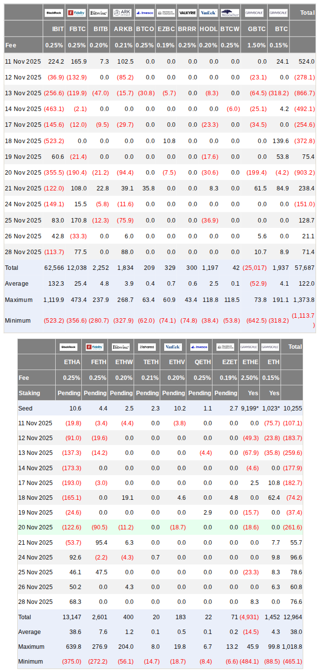 Bitcoin-ETFs beendeten die Thanksgiving-Woche mit Zuflüssen in Höhe von 220 Milliarden US-Dollar, während die Ether-Äquivalente 312 Millionen US-Dollar einnahmen.
