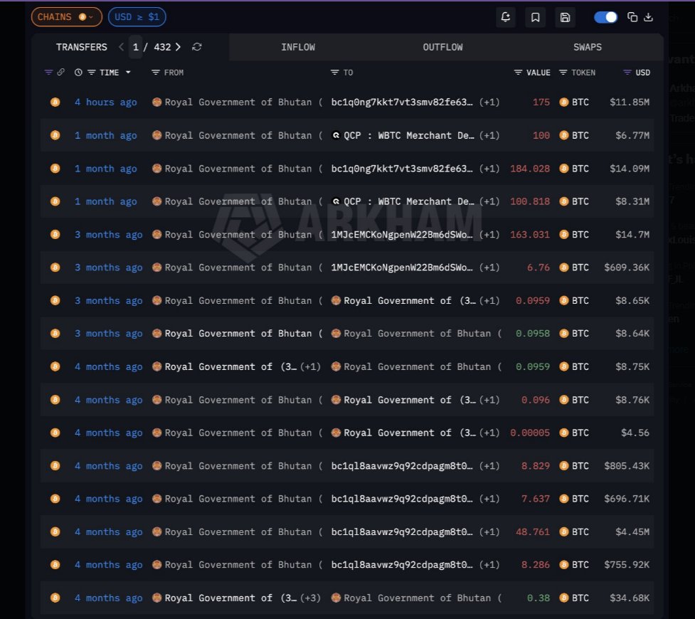 Bhutan verkauft regelmäßig Teile seiner Bitcoin in Paketen von 5 bis 10 Millionen US-Dollar, wobei ein besonders… pic.twitter.com/tBuz280bBe
