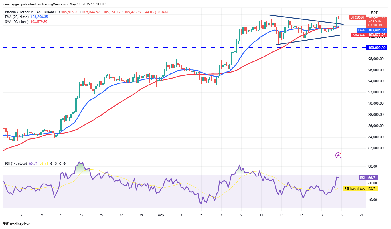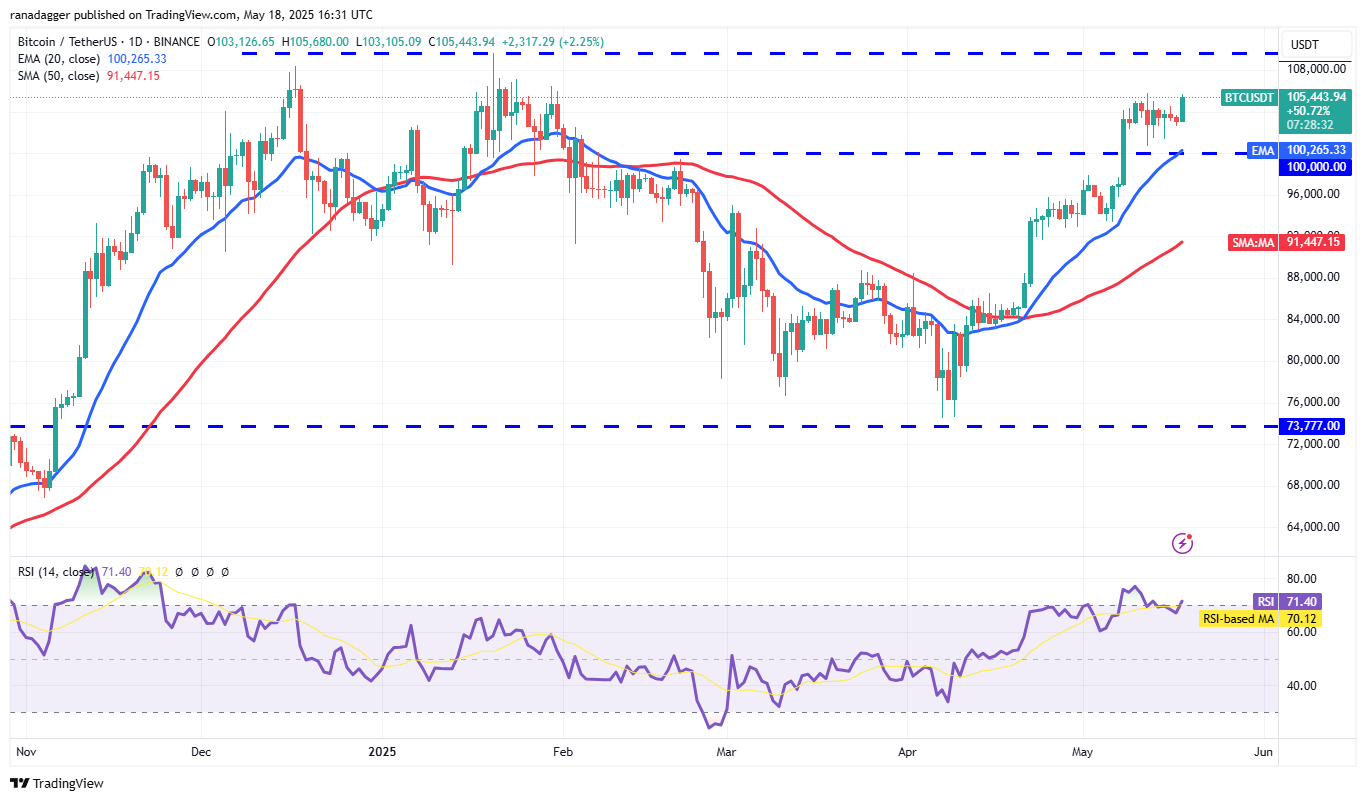 Bitcoin bleibt in einer Reichweite festgefahren, aber die Bullen versuchen, den Overhead -Widerstand bei 105.820 US -Dollar zu überwinden.