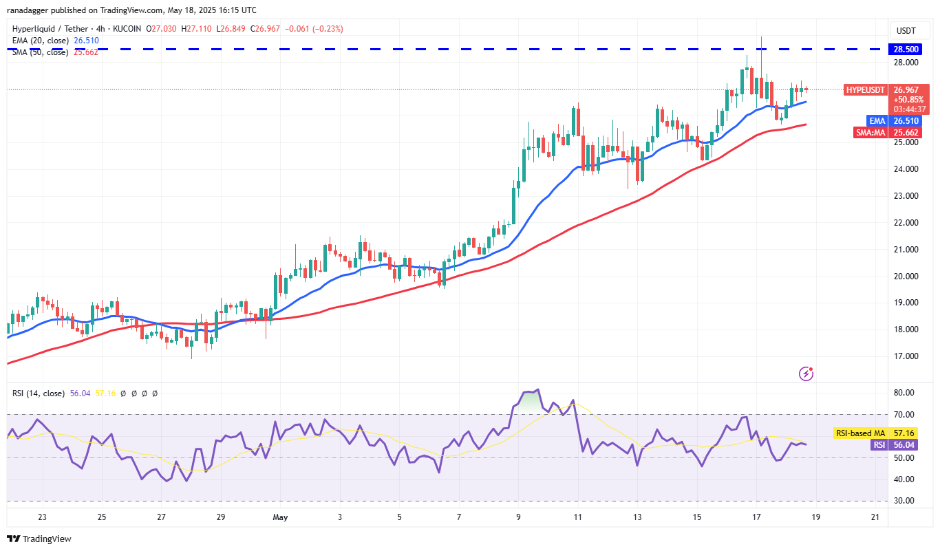 Hyperliquid (Hype) ist mit 28,50 US -Dollar gegen einen Widerstand ausgesetzt, aber ein positives Zeichen ist, dass die Bullen den Bären nicht viel gemahlen haben.