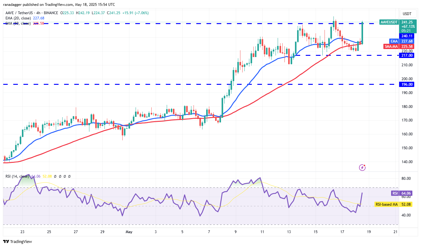 Wenn der Preis über 240 US -Dollar schließt, kann das AAVE/USDT -Paar die nächste Etappe der UP -Bewegung starten. Das Paar könnte auf 280 US -Dollar steigen, was als Widerstand dienen kann, aber wenn die Bullen bestehen bleiben, könnte der nächste Stopp 300 US -Dollar betragen.