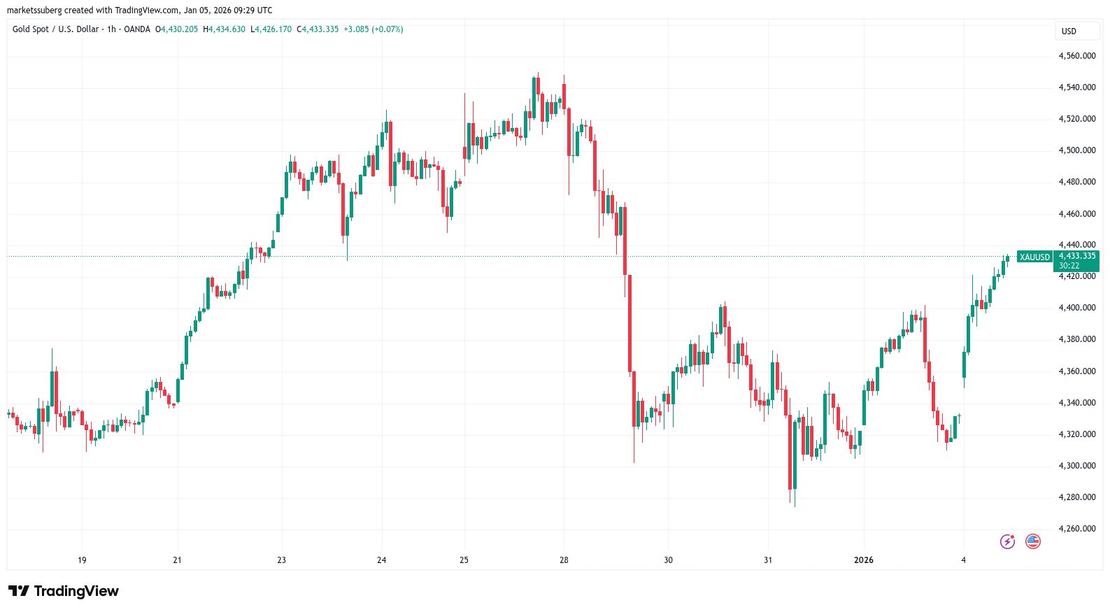 XAU/USD stieg zum Zeitpunkt des Schreibens am Montag um 2 % und näherte sich damit dem Allzeithoch vom Dezember von 4.450 USD pro Unze.