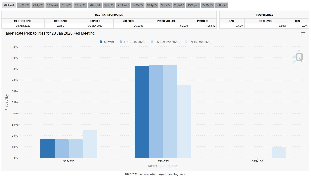 Die neuesten Daten der CME Group FedWatch-Tool Die Wahrscheinlichkeit einer minimalen Kürzung um 0,25 % liegt bei lediglich 17,2 %.