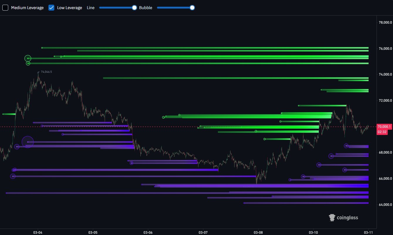 Das offene Bitcoin-Interesse löste die Vorhersage einer hohen BTC-Preisvolatilität aus, da die 70.000-Dollar-Marke nach wie vor das wichtigste Erholungsniveau der Bullen war.