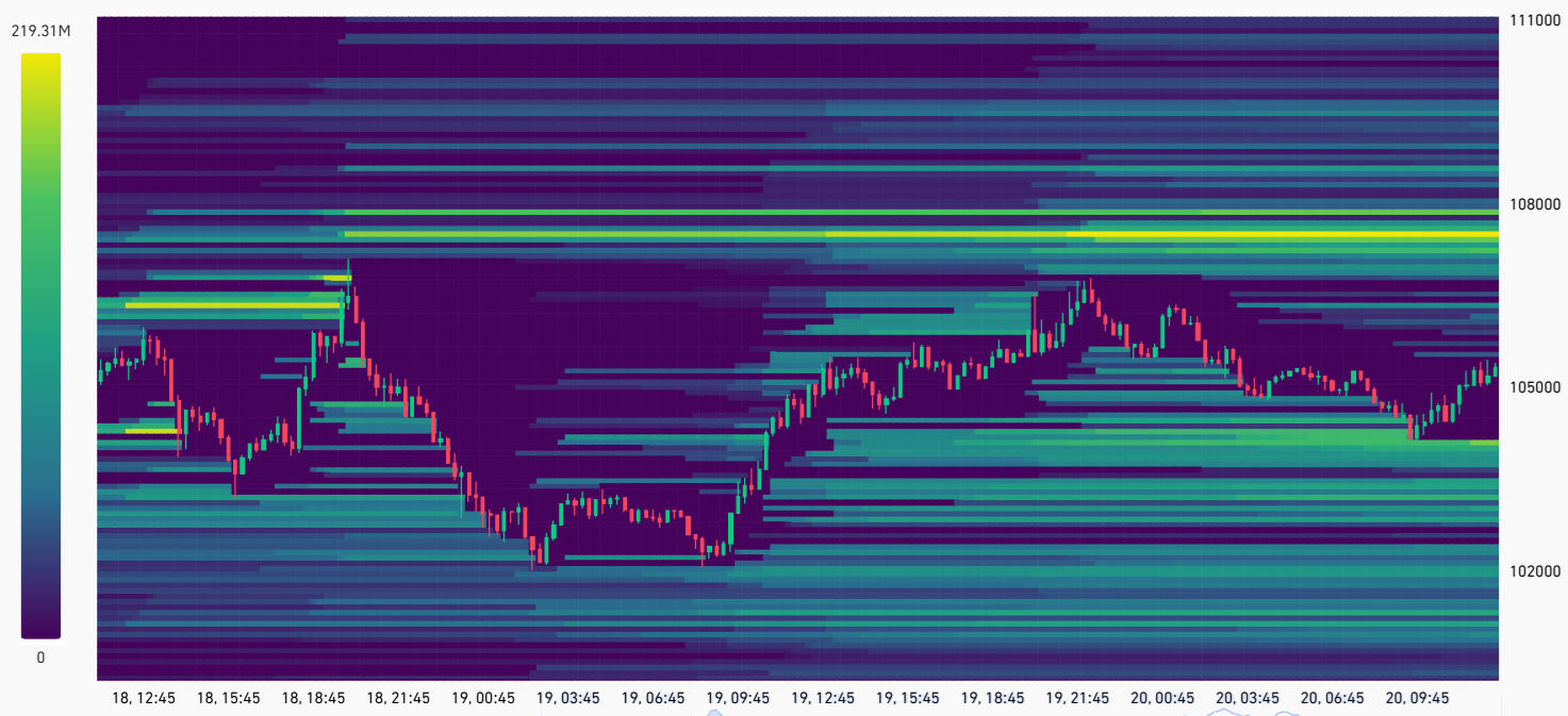 Nach Schätzungen von Coingglass liegt die größte Konzentration an bärischen BTC -Futures -Liquidationen zwischen 107.000 und 108.000 US -Dollar, was etwa 1,2 Milliarden US -Dollar entspricht.