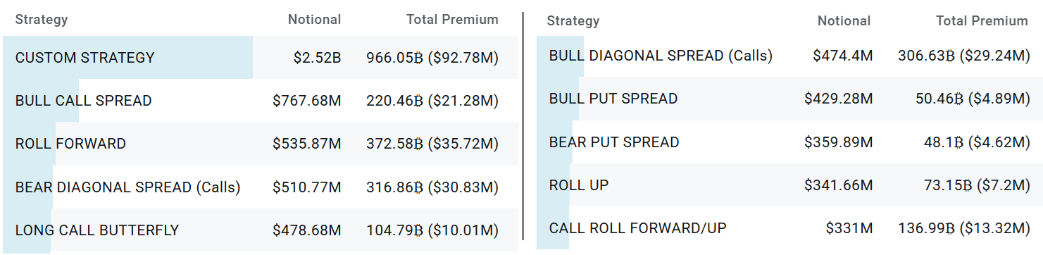 Zu den größten Optionstrategien, die bei Deribit gehandelt werden, gehört der „Bull -Put -Spread“, bei dem eine Put -Option verkauft wird und gleichzeitig einen weiteren Put -Preis zu einem niedrigeren Ausübungspreis kauft und sowohl den maximalen Gewinn als auch das Abwärtsrisiko einschränkt. Zum Beispiel könnte ein Händler, der von höheren Preisen profitieren soll, die 100.000 US -Dollar verkaufen und die 95.000 US -Dollar kaufen.