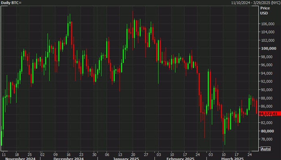 Bitcoin hat den heutigen Rückgang auf 3,5% oder 3110 USD in einem Rückgang von 84.163 US -Dollar verlängert.