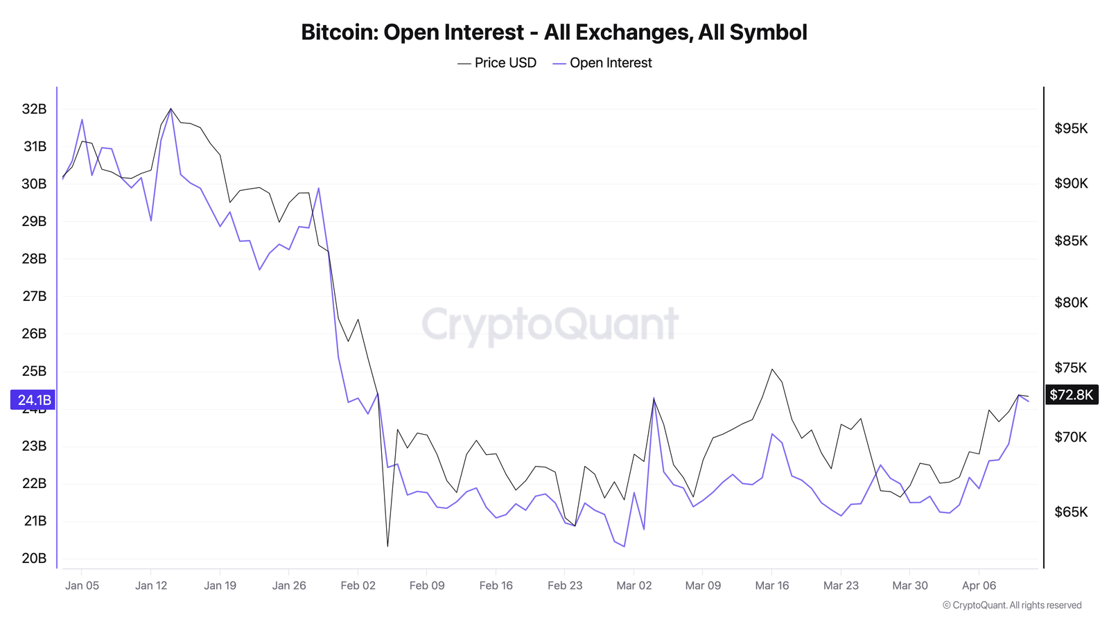 Nach BTC/USD hat die 73.000-Dollar-Marke überschritten Am Freitag schienen Händler bestrebt zu sein, diejenigen in den Markt zu locken, die auf einen anhaltenden Preisanstieg setzten. Die Finanzierungszinsen an den Börsen blieben negativ, während das offene Interesse auf 24,2 Milliarden US-Dollar stieg – den höchsten Stand seit Anfang März.