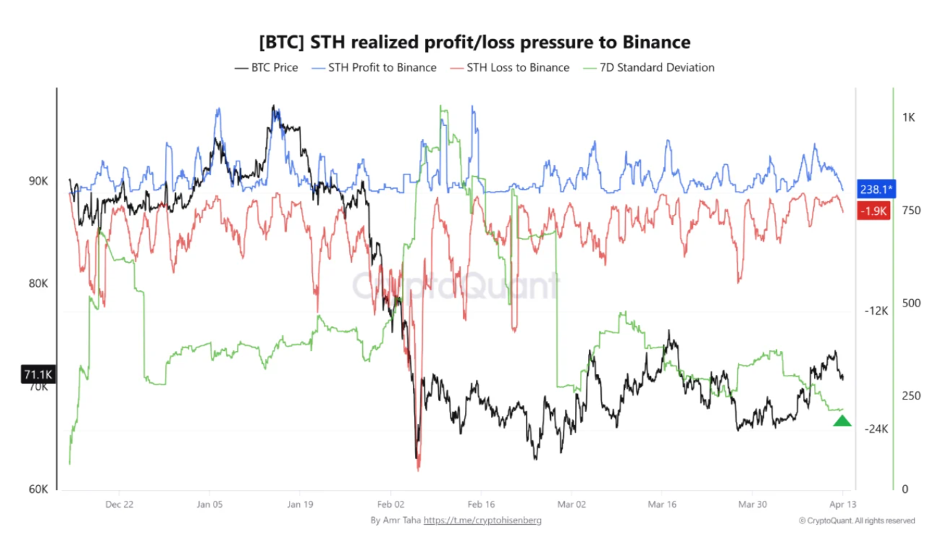„Der Schritt signalisiert, dass kurzfristige Inhaber Münzen mit weniger aggressiven Gewinnmitnahmen und weniger panikbedingten Verlustrealisierungen an Binance senden, wodurch der kurzfristige Verteilungsdruck auf dem Markt verringert wird.“