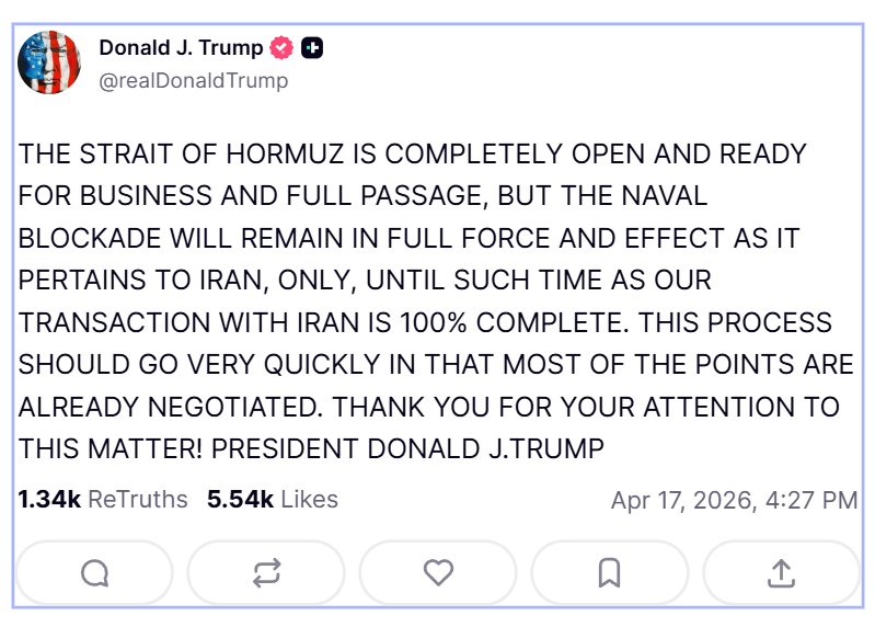 Der iranische Außenminister sagte am Freitag, dass die Straße von Hormus für den Rest des derzeitigen Waffenstillstands für den kommerziellen Schiffsverkehr geöffnet sei, was zu schnellen Marktreaktionen führte.