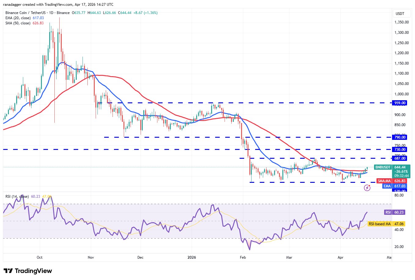 BNB (BNB) schloss am Donnerstag über dem 50-Tage-SMA (626 USD), was darauf hindeutet, dass der Verkaufsdruck nachlässt.