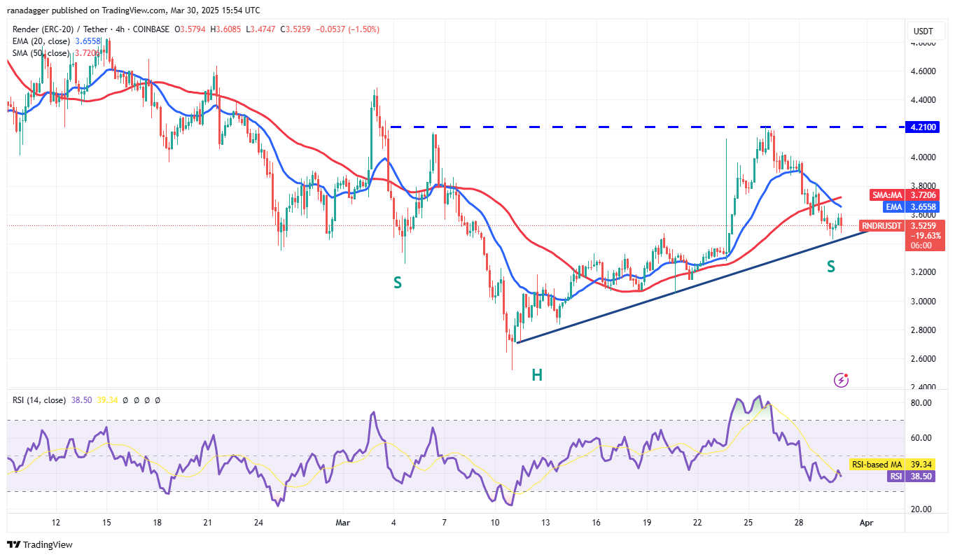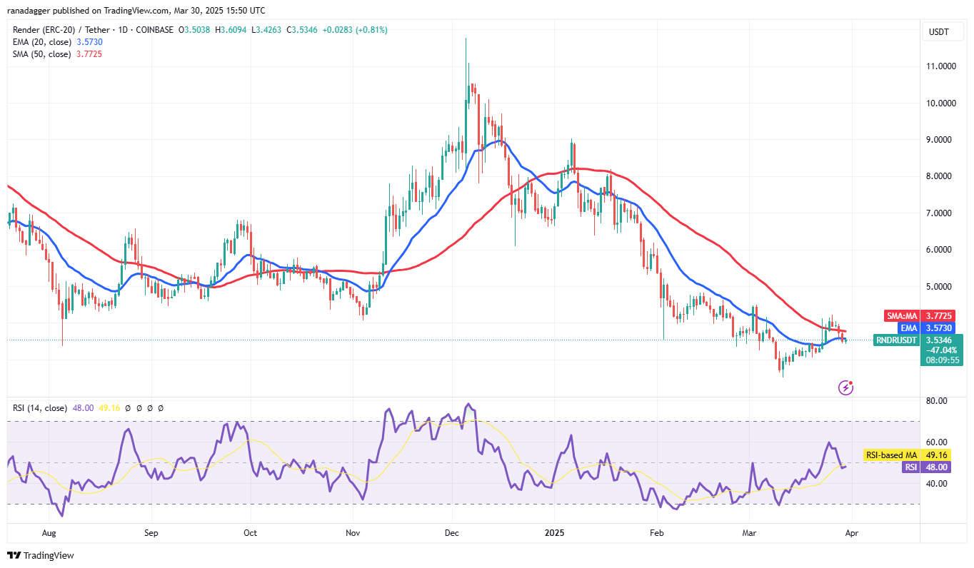 Rendern (RNDR) ist seit mehreren Wochen in einem starken Abwärtstrend, aber die Bullen haben den Preis am 25. März über die 50-Tage-SMA (3,77 USD) überschritten und die Nachfrage auf niedrigeren Niveaus signalisiert.