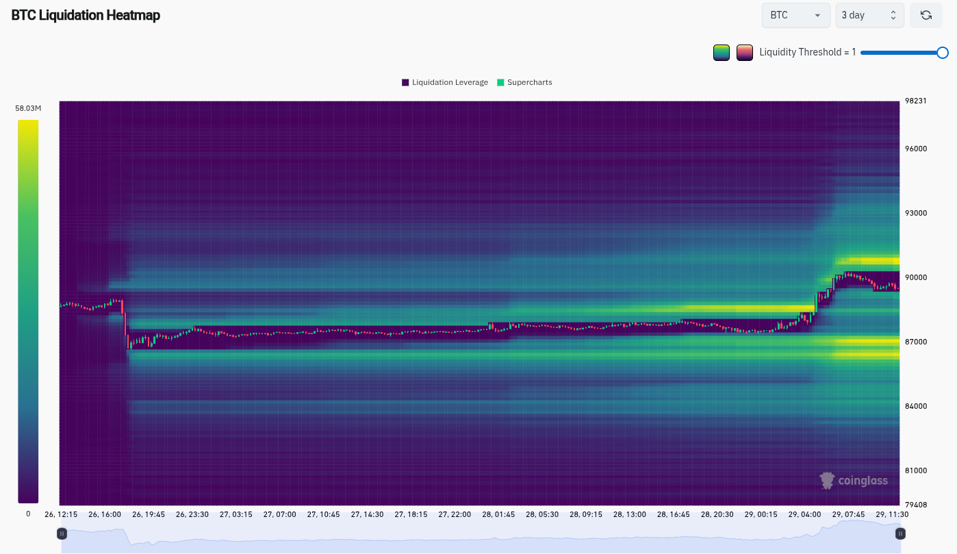 Daten aus der Überwachungsressource CoinGlass In Erwartung der letzten TradFi-Handelstage des Jahres zeigte sich in den letzten drei Tagen eine Verdickung der Liquidität um den Spotpreis.