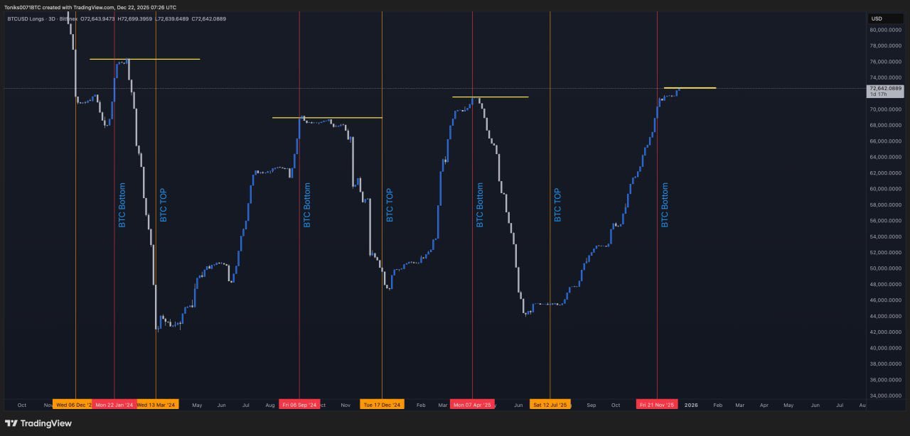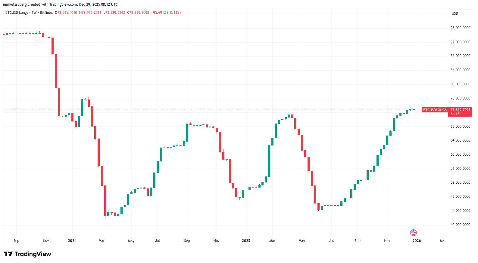 „Obwohl die Leute eine Wiederholung des 4-Jahres-Zyklus fordern, glauben die Bitfinex-Wale, dass noch ein großer Pump übrig ist“, sagte BitBull kommentiert in der X-Analyse der Daten.